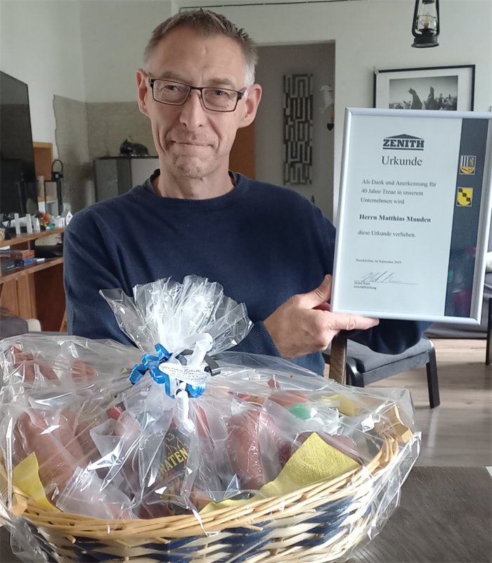 ທ່ານ Markus T ü rk, ຜູ້ທີ່ມີອາຍຸ 47 ປີ, ຍັງສະຫຼອງວັນຄົບຮອບ 30 ປີຂອງລາວ. ລາວໄດ້ສໍາເລັດການຝຶກອົບຮົມພະນັກງານໃນອຸດສາຫະກໍາ 3 ປີທີ່ ZENIT ແລະປະຈຸບັນເຮັດຫນ້າທີ່ເປັນຫົວຫນ້າພະແນກຂາຍອາໄຫຼ່ອາໄຫຼ່. ເປັນເວລາຫລາຍປີ, ລາວໄດ້ສະຫນັບສະຫນູນການສະຫນັບສະຫນູນຫລັງການຂາຍທີ່ມີປະສິດທິພາບແກ່ລູກຄ້າທົ່ວໂລກທີ່ມີຄວາມຮັບຜິດຊອບສູງແລະຮັບປະກັນລະບົບການບໍລິການຂອງບໍລິສັດ.